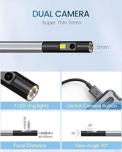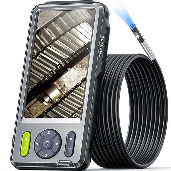 - 5mm Dual Lens Inspection Camera, Teslong Borescope with LED Light, HD Industrial Endoscope, 5" IPS Screen, Waterproof Video Scope Camera, Flexible Cable for Home/Automotive/Pipe/Car/Wall(16.5FT): reliable performance and quality- Effortless Angle Switching with Dual Cameras: Switch- Crystal Clear 1080P HD Imagery: Enjoy stunning clarity- Super Slim 5.5mm Probe for Extended Reach: The- Long Battery Life & Handy Accessories for Every Job: