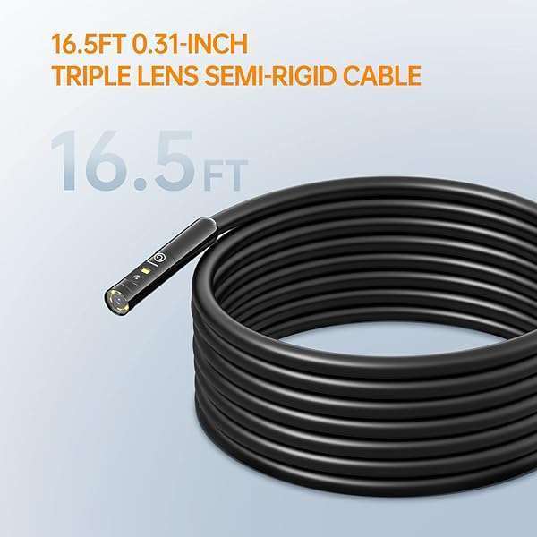 - 16.5FT Triple Lens Probe, 7.9mm/0.3inch Diameter Semi-Rigid Cable Compatible with MS450 Inspection Camera: reliable performance and quality- ONLY compatible with Teslong MS450 Inspection Camera (Note: Only as- 16.5FT Semi-Rigid Cable Probe - Can be folded to different shapes and- Triple Lens Camera - See More & See Clearly - An extra close-focus- IP67 Waterproof - Can support inspect area under water included
