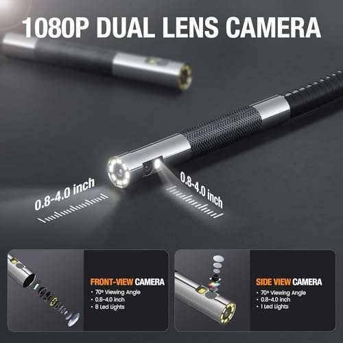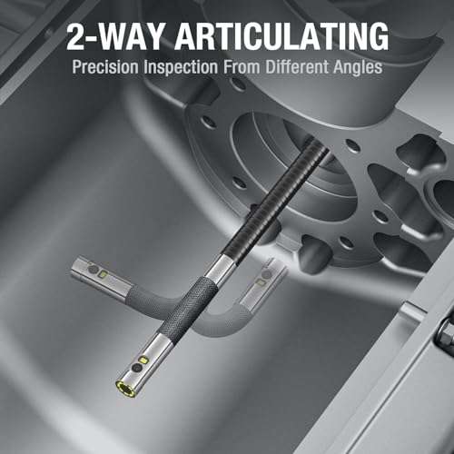 * Teslong Articulating Borescope with Dual Lens Endoscope Camera, Two-Way Articulated Industrial Inspection Camera with LED Light, Flexible Mechanic Fiber Optic Snake Scope Cam for Wall Automotive-5FT: easily maneuver your view: say goodbye to inspection challenges in tight spaces * This two-way articulating borescope * Equipped with a flexible probe and dual camerasa front-view and a side-view lensoffers comprehensive visibility without repositioning * With crystal-clear feedback * Its perfect