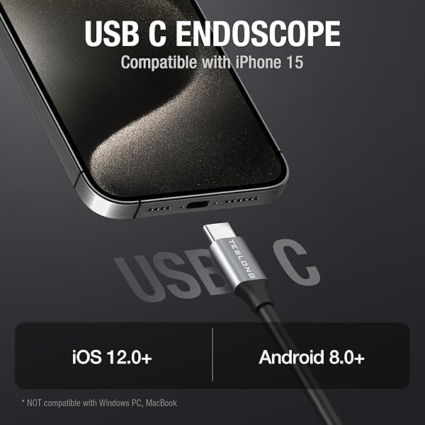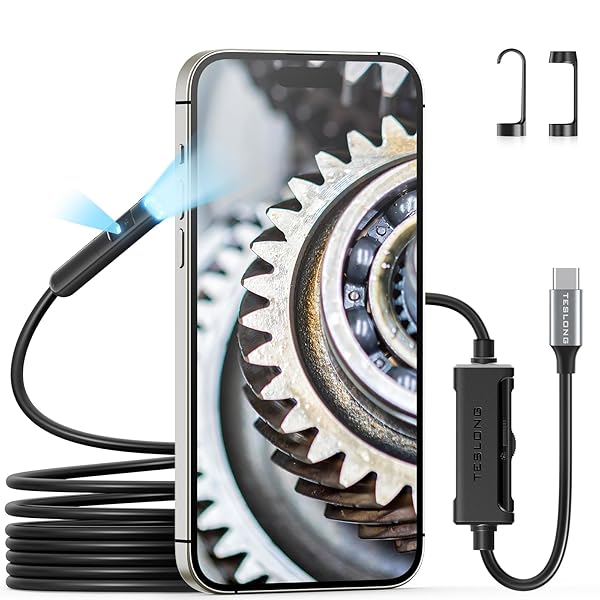 - Dual Lens Endoscope with Light, Teslong USB-C Borescope Inspection Camera with 8+1 LED Lights, Flexible Waterproof Fiber Optic Snake Camera Scope Compatible with iPhone 15, Android Phone(10FT) with reliable performance and quality- Explore from Different Angle - This dual-lens borescope offers front & side viewing, enabling you to inspect objects from various angles. The short-focus side camera provides a detailed, close-range 90-degree view for precision examinations.- Uni
