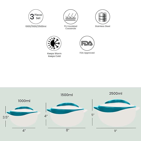 - Pinnacle 3 Piece Thermo Dish Hot or Cold Casserole Serving Bowls with Lids Turquoise offers reliable performance and quality- PINNACLE THERMO Insulated Bowls is the HEALTHY CHOICE! The Thermo Bowls Maintain Food Temperature Warm for up to 4 hrs. and Cold for up to 6 hrs. Its HASSLE FREE and HEALTHY- Avoid Reheating -You Don't Need to Microwave and it Will PRESERVE THE FOODS ESSENTIAL NUTRIENTS, VITAMINS AND TASTE *.B.P.A.Free