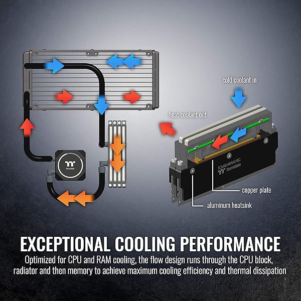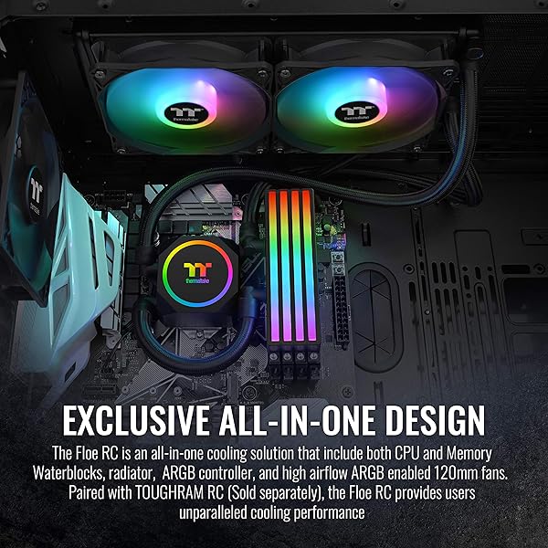 * Thermaltake Floe RC240, AMD (AM5/AM4) / Intel (LGA 1700/1200), TT RGB Plus Software/Motherboard Sync ARGB Controlled, 240mm PWM All-in-One CPU & Memory Liquid Cooler CL-W271-PL12SW-A: the floe rc is a high-quality all-in-one cooling solution optimized for cpu and ram cooling * The flow design runs through the CPU block * Radiator and then memory to achieve maximum cooling efficiency and thermal dissipation * The Floe RC supports motherboards equipped with a 5V addressable RGB header * Allowing