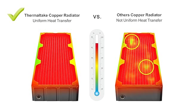 - Thermaltake Pacific DIY Liquid Cooling System CL360 64mm Thick Copper Radiator CL-W191-CU00BL-A offers reliable performance and quality- More Rows for More Cooling: Built to perform, this 64mm thick radiator offers a triple-row flat tube design and brass tank for best thermal capacity- High-Density Copper Fin Design: Designed to accommodate high air volume (Fin per Inch: 14)