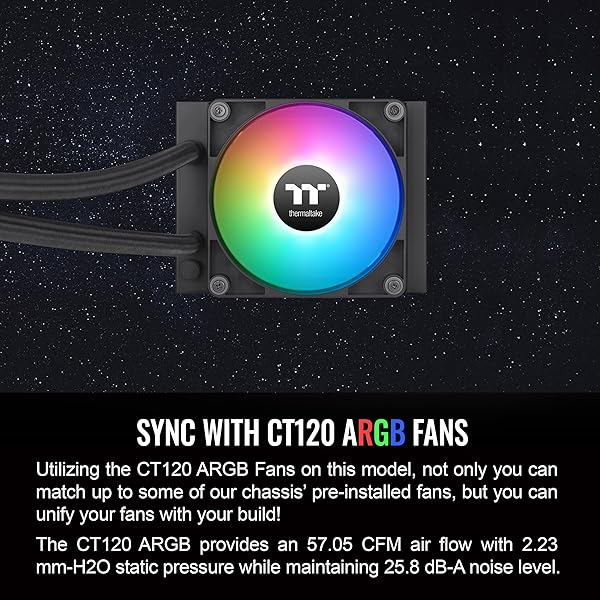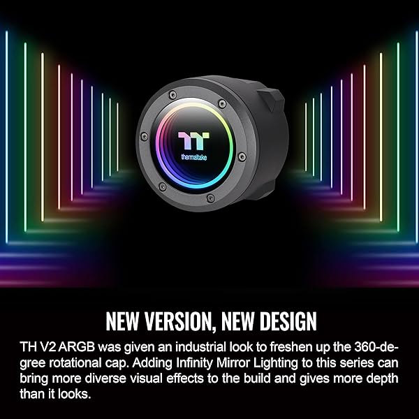 * Thermaltake TH120 ARGB Sync V2 CPU Liquid Cooler/AlO Liquid Cooling/Fan 120mm*1/PWM 500~2000 RPM/Mirror Waterblock/MB ARGB Sync Control, CL-W360-PL12SW-A , Black: from the all-new th v2 argb series * The TH120 V2 ARGB has a new industrial cap with an infinity mirror light design * Bringing a new vibe to the TH series * Adding Infinity Mirror Lighting to this series can bring more diverse visual effects to the build and gives more depth than it looks * Equipped with one CT120 ARGB fan