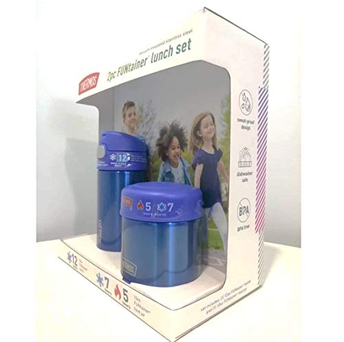- Thermos FUNtainer Lunch Set Bottle and Food Jar for Kids BPA Free Dishwasher Safe, 2 PC (Blue, 2 PC Set) offers reliable performance and quality- Integrated Carry Loop- Double Wall Vacuum Insulated- Convenient Push Button Lid- Silicone Straw
