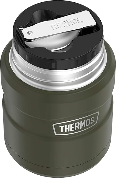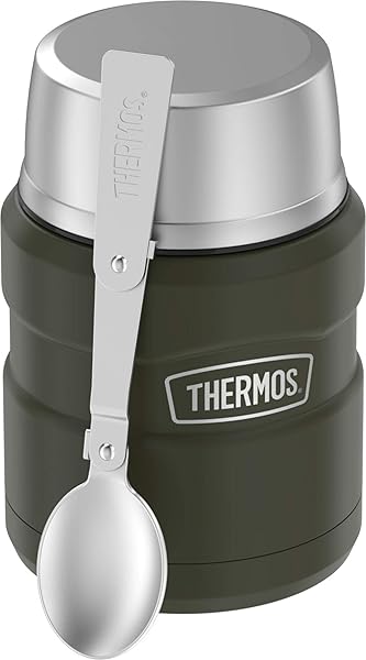 - THERMOS Stainless King Vacuum-Insulated Food Jar with Spoon, 16 Ounce, Army Green offers reliable performance and quality- STAYS HOT OR COLD: THERMOS vacuum insulation technology for maximum temperature retention of hot or cold meals. Keeps the weather out and the delicious in. Soups stay hot for up to 9 hours and cold foods stay cold up to 14 hours