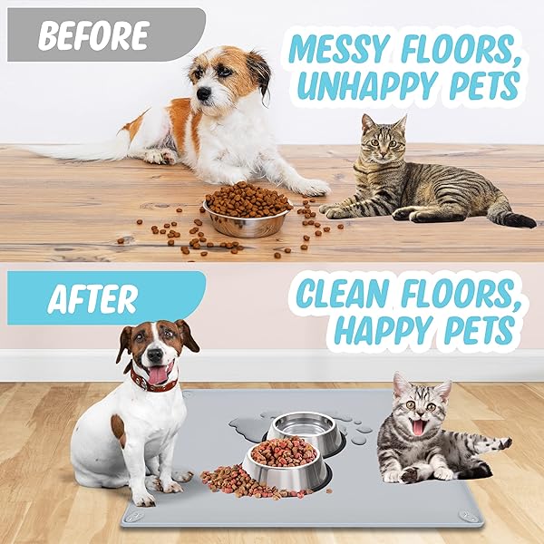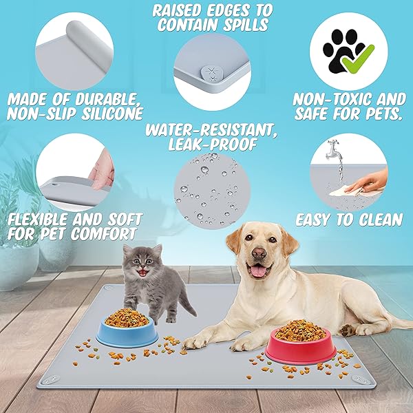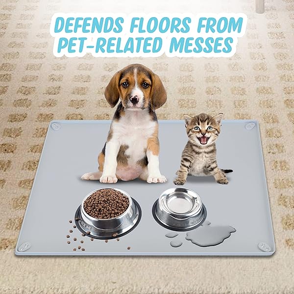 - TidyFriend Pet Food Mat 30 x 23 Inches, Non Slip Dog Food Mat, Silicone Dog Bowl Mat Waterproof, Pet Supplies (Soft Grey) with reliable performance and quality- [ SILICONE FLOOR MAT KEEP YOUR FLOOR CLEAN ] - This Skywin Splash Food Mat for Dogs is a good solution to keeping floors clean from pet messes. Crafted with Food Grade Silicone makes this dog bowl mat waterproof. This dog tray, catches and contains any food or water spills and prevents messy floors- [ PET-FRIENDLY E