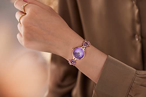 TIME100 Watches for Women Ladies Fashion Dress Bracelet Quartz Wrist Watch Round Dial Brass Strap with Diamonds Waterproof Purple (W80322L.01A)