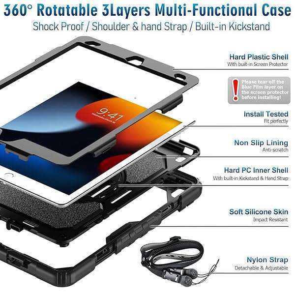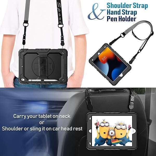 - Timecity Case for iPad 9th/ 8th/ 7th Generation 10.2 inch - Heavy Duty Protective Cover with Screen Protector, Rotating Stand, Shoulder Strap & Pencil Holder | Kids-Friendly (Black) provides reliab...- MODEL SPECIFICATIONS: Designed for 10.2-inch iPad 7th Gen (A2197/A2198/A2200), 8th Gen (A2270/A2428/A2429/A2430), 9th Gen (A2602/A2603/A2604/A2605); Confirm compatibility under Settings > General >...