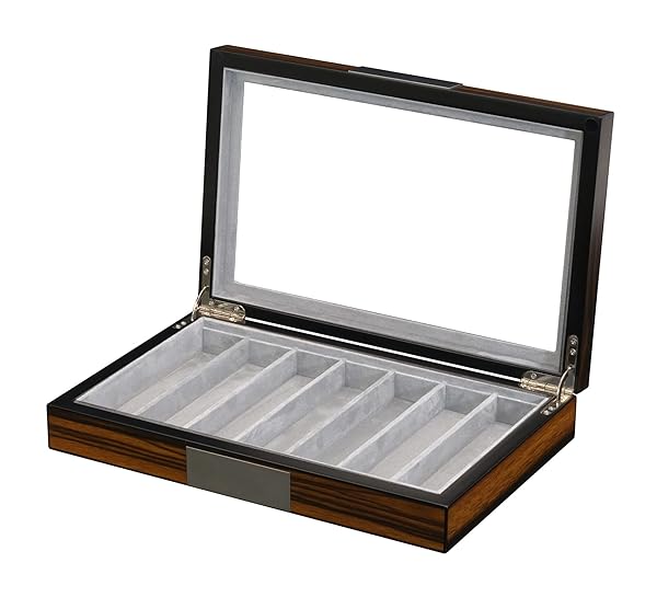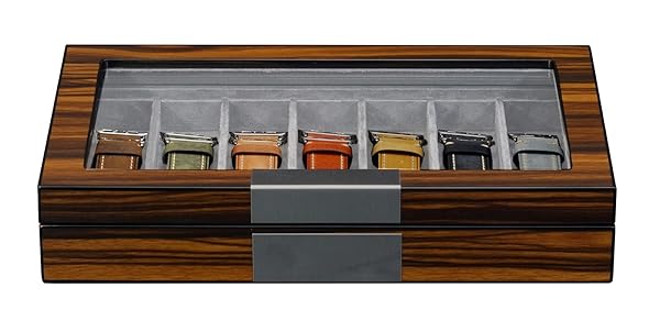 * TimelyBuys Walnut Wood Watch Band Storage Display Case with Glass Top and Stainless Steel Accents and Hinges for Smart Watchbands, Oversized Watch Bands: timelybuys watch cases: versatile watch band and accessories storage case with glass lid for men and women * Tastefully protects * Stores * And organizes your favorite regular and smart watch bands and straps * TimelyBuys watch cases are known for their first-class workmanship