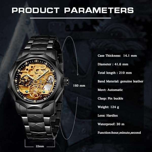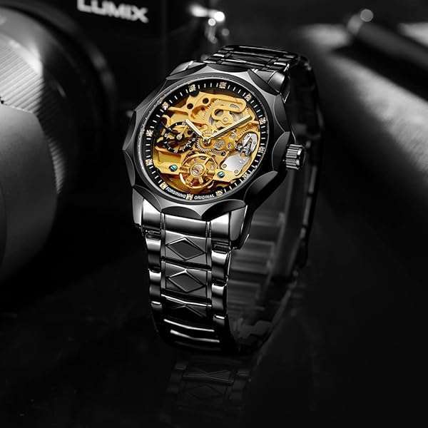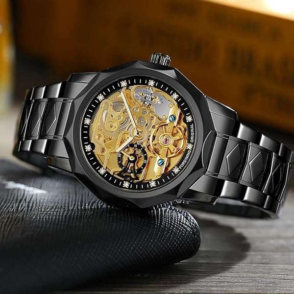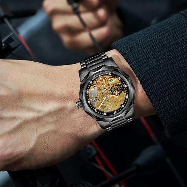 - Tiong Men's Watch Mechanical Skeleton Waterproof Watch, Stainless Steel Strap Automatic Men's Watch, Men's Dress Watch for Father's Day/Birthday- Black Gold...: reliable performance and quality- PracticalityThis watch is suitable for: adults, fathers, brothers,- Mechanical Movement: Automatic mechanical watch power is- Daily WaterproofDaily life waterproof-water resistant to sweat,- Stainless Steel Strap: The black strap is very fashionable and