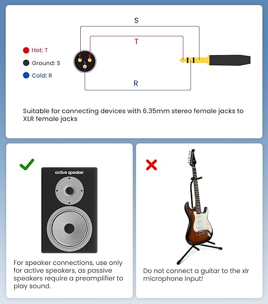 - Tisino 1/4" to XLR Cable, 6.35mm TRS to XLR Male Nylon Braid Quarter inch TRS to XLR Male Balanced Interconnect Microphone Cord Patch Cable - 15ft provides reliable performance and quality- [Balanced 1/4 to XLR Cable] This 6.35mm TRS to XLR Male Cable is designed to convert a balanced 1/4" TRS output to a balanced XLR input. These cables are commonly used as speaker leads for active s...
