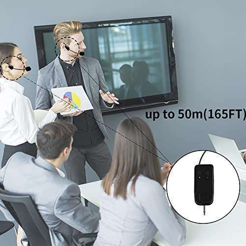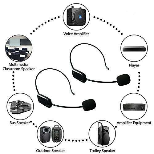 * Wireless Microphone System for 2 People, 2.4G Dual Wireless Headset Mics Ideal for Speakers, Voice Amplifier, PA System, Teacher, Tour Guides, Fitness Instructor: 2.4g wireless transmitteradopt advanced 2.4g wireless transmission technology .the wireless headset microphone system is easy to pair * Just turn on the transmitter and receiver power switches * The blue light will flash for approximately 2s * Indicator light stops flashing after a successful match * And then you can use the wireless