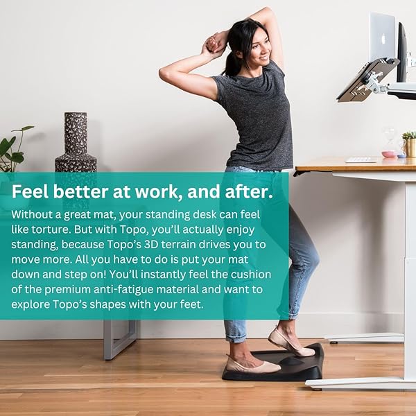 - Topo Mini Comfort Mat by Ergodriven | The Smaller Not-Flat Anti-Fatigue Standing Desk Mat with Calculated Terrain | Accessories | Obsidian Black offers reliable performance and quality- CRITICAL STANDING DESK ACCESSORY - If you have a standing desk, you need a standing desk mat. Why? Because with no mat (or a cheap one), youll feel more pain and fatigue, which results in standing less and sitting more. A good mat solves this problem!