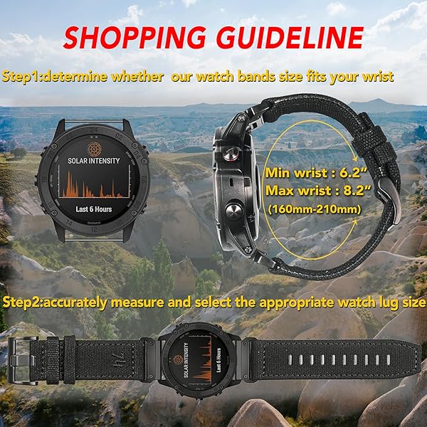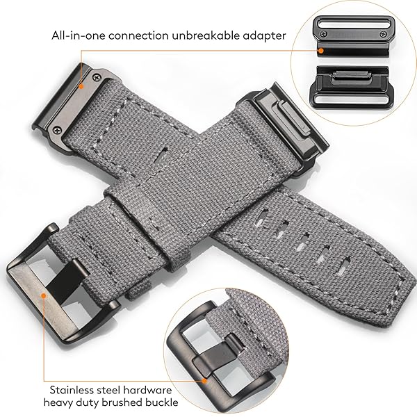 - for Garmin Fenix 5X/5X Plus, Fenix 6X/6X Pro, Fenix 7X, Fenix 3/3 HR, Descent, 26mm Nylon Quick Release Watch Band Replacement with reliable performance and quality- Comfortable and skin-friendlyThe watch strap is made of non-toxic and odorless canvas material, which can prevent skin irritating rashes. It is very suitable for outdoor sports such as golf, baseball, camping, hiking, skiing, skating, cycling, fishing, mountaineering, traveling, and field training.- Stainless s