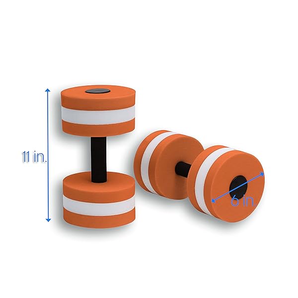 - Trademark Innovations Lightweight Aquatic Exercise Dumbells - Set of 2 Foam - For Water Aerobics (Orange) offers reliable performance and quality- Made from EVA foam, providing buoyancy and low water absorption- Each barbell measures 11" long x 6" wide and weighs .66lbs- Work your upper body as well as your lower back and abs for a total fitness workout- Warning: Not to be used as a flotation device. For ages 14+