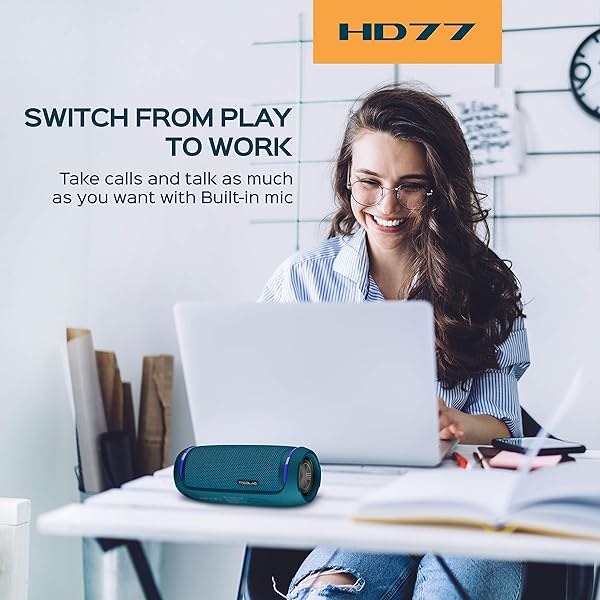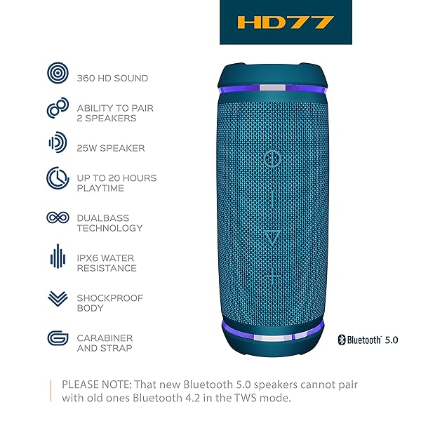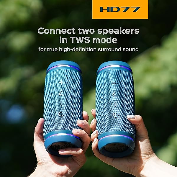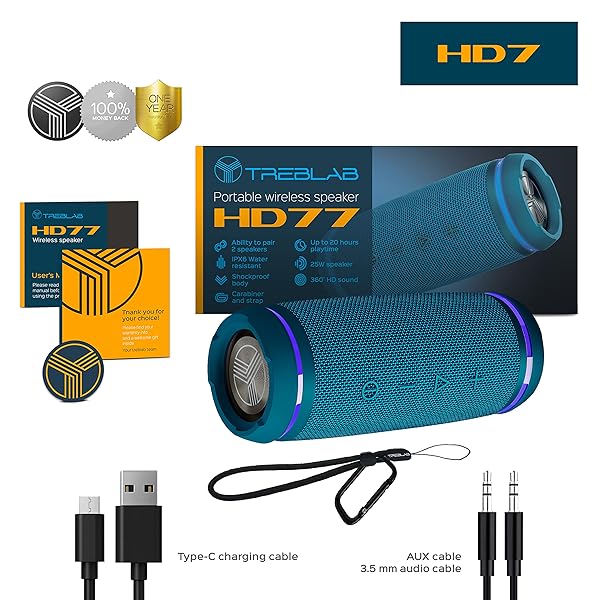 - TREBLAB HD77 Bluetooth Speaker, 30W Portable Wireless Speaker with 360 Stereo Sound & Deep Bass, IPX7 Waterproof Outdoor Bluetooth Speaker, 20H Battery, TWS Pairing for Home, Beach, Pool, Camping: reliable performance and quality- 360 Hi-Fi Stereo Sound & TWS Dual Pairing- EQ Modes & RGB Colorful Light Effects- Bluetooth 5.4 & 20H Long Battery Life- Portable Design with AUX & Built-In Mic