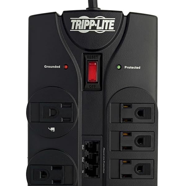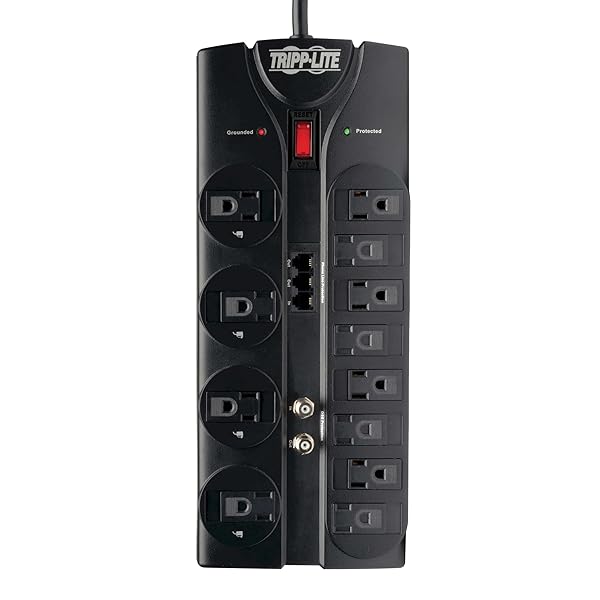 - Tripp Lite TLP1208TELTV 12 Outlet Surge Protector Power Strip, 8ft Cord, Right-Angle Plug, Tel/Modem/Coax Protection, RJ11, & Dollar 150,000 Insurance Black provides reliable performance and quality- HOME THEATER SURGE PROTECTOR FOR TV: Features 12 outlets, 2160 joule rating, and an 8ft extension cord with a flat plug. Four outlets fit bulky transformers without blocking other outlets. Package ...