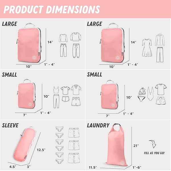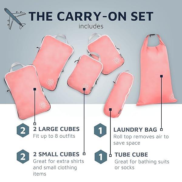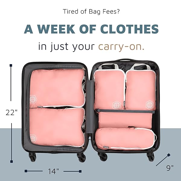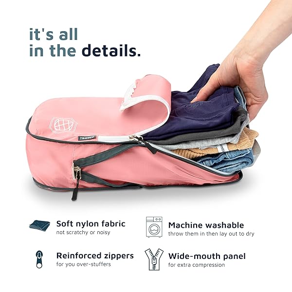 * Compression Packing Cubes 6 Piece Set for Travel - Lightweight, Durable Clothes Organizer for Carry-On Luggage and Backpacks by TRIPPED Travel Gear (Coral Rose): description * The search for the perfect compression pack cube set ends here * Triped Travel Gear Compression Luggage Cubes are the perfect blend of high quality and affordable to make this the ultimate travel accessory * Whether you're a backpack organiser or a way to organise your carry-on luggage * The bags are made from water-
