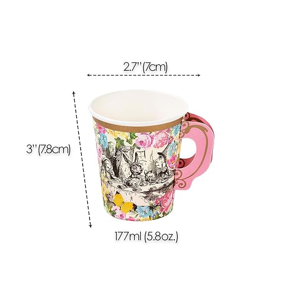 - Talking Tables 12 x Alice in Wonderland Disposable Paper Teacup Set with Handle & Saucers Mad Hatter Afternoon Tea Party Table Decorations for Mother's Day, Onederland Birthday, Baby Shower, Wedding offers reliable performance and quality- make time for tea and delight you guests with these beautifully illustrated alice in wonderland themed party cups