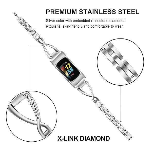 - TRUMiRR Band for Fitbit Charge 5 Women, Stainless Steel & Diamond Watchband Feminine Jewelry Strap for Fitbit Charge 5, Silver provides reliable performance and quality- APPLICATION: Specially designed for Fitbit Charge 6 / Charge 5.- X-LINK DESIGN: Concise & stylish, dressing up your Charge 6 / Charge 5 to be more feminine and exquisite. Customed adapters, just install and detach freely by hand, no tool needed.