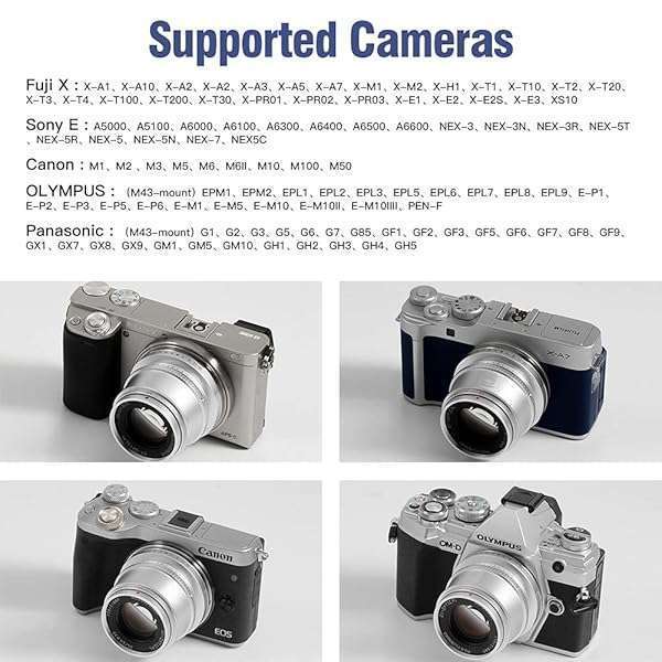 - TTArtisan 35mm F1.4 Silver APS-C Portrait Lens for Sony E Mount A9 A7R IV A7R III A7R II A7SII A7III A7II A7C A5000 A5100 A6000 A6100 A6300 A6400 A6500 A6600 NEX-3 NEX-5 MEX-6 NEX-7 (Silver) provid...- Compact Portrait Lens: Designed for APS-C mirrorless cameras, this 52mm equivalent lens offers a natural field of view, perfect for portraits, street photography, and capturing food, coffee, and an...