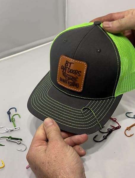 - Eagle Claw Camo Hat Hook Two Camo Fish Hook Money/Tie Clasp -(Set of Two Hooks) offers reliable performance and quality- Custom Color Fish Hook for your Favorite Cap Only available at BT Outdoors- They can be slid on to the bill of a cap or used as a tie clasp. This item features the same quality as regular fish hooks, just a little fancier. Measures 2" in length