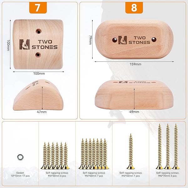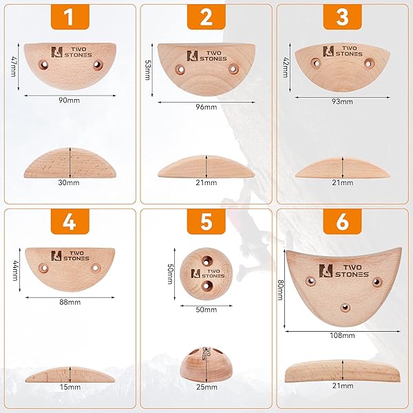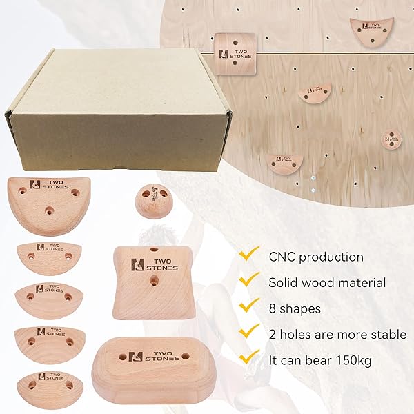 * TWO STONES Wooden Rock Climbing Holds Kids and Adults | Wood Rock Wall Climbing Holds Kids and Gyms | Variety Screw On Climbing Hand Holds Set with Mounting Hardware: for rock climbers * Unlike plastic outdoor climbing holds for playing * Our holds are made from a solid beech block * Mainly for professional climbers of adults and kids * DESIGNED BY ROCK CLIMBERS
