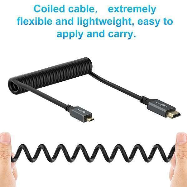 Twozoh 4K Coiled Micro HDMI to HDMI Cable for GoPro Hero 7 & Raspberry Pi 4 - 1.5M/5FT Extension