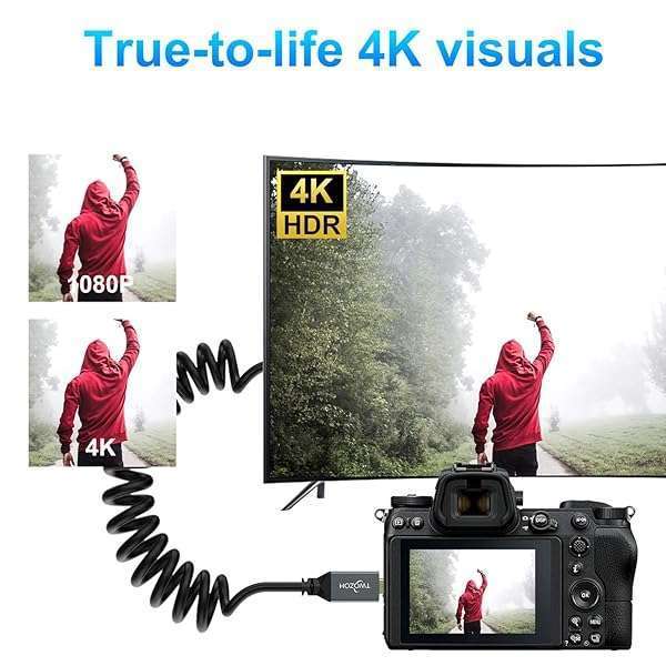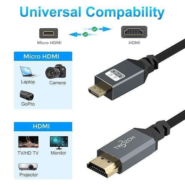 * Twozoh Micro HDMI to HDMI Coiled Cable, Coiled Micro HDMI to Full HDMI Cable Support HDMI 2.0, 3D 4K UHD, 1080p (Extend up to 1.5M): item: hdmi a to hdmi d type coiled cable micro hdmi to hdmi coiled cable * Coiled Spiral * Cable can stretch * Extremely stretched to 1.5meters/5feet * Micro HDMI to HDMI Cable connect your Digital Camcorders