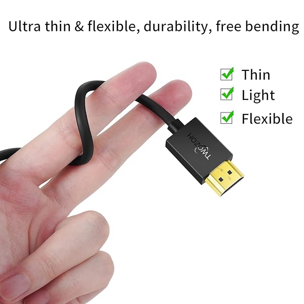 - Twozoh Slim HDMI Cable 15FT 2 Pack, Ultra Thin & Extreme Flexible HDMI to HDMI Cord Support 4K@60Hz/2160P/1080P offers reliable performance and quality- 2 Pack HDMI Cable 15FT: You can get 2-pack HDMI Male to Male Cable will not need to plug and unplug the HDMI cable frequently, which can effectively protect the ports of the device