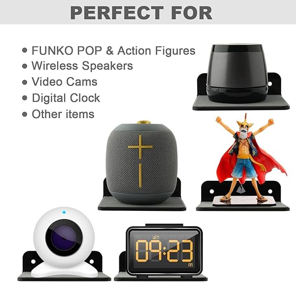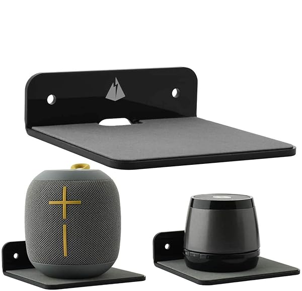 * TXEsign Floating Shelves Speaker Shelves-2 Pack 4.25 Wall Shelves Speaker Mount for Speaker Webcam Display Acrylic Shelves (Black, Small): suitable for all small portable speakers even with an outer case * Mount behind your bed with speaker/phone/alarm clock on it * Hold speakers or smart devices up to 800g * Convenient and attractive to hold Small Speakers/Smartphones/Action Figures/Mirrorless Camera/Monitor/Alarm Clock/Alexa/Smart Devices in room * Kitchen,office etc
