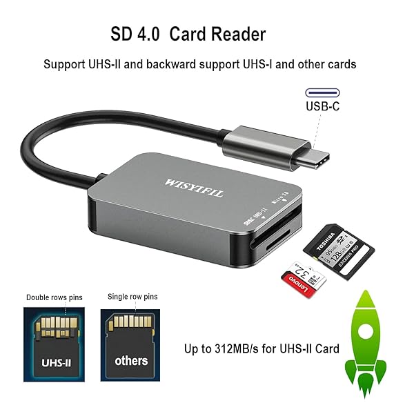 - UHS-II High Speed Card Reader, USB C SD 4.0 Memory Card Reader, for SDXC, SDHC, SD, MMC, Micro SDXC, Micro SD, Micro SDHC Card, UHS-II UHS-I Cards, Compatible with MacBook Pro, iPad Pro Samsung S21...- [Super-Fast Transfer Speeds] Support UHS-II card Ultra High transfer speeds, Up to 312MB/s high speed, you can move files quickly, it is a must have sd card reader for a heavy SD card users like se...