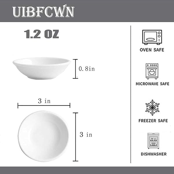 UIBFCWN 12 Pack Soy Sauce Dish 3inch Ceramic Dipping Bowls Bulk, 1.2 Oz White Dipping Sauce Bowls/Dishes, Small Dipping Sauce Cups for Sushi Ketchup Olive Oil Appetizer