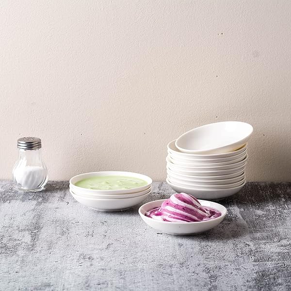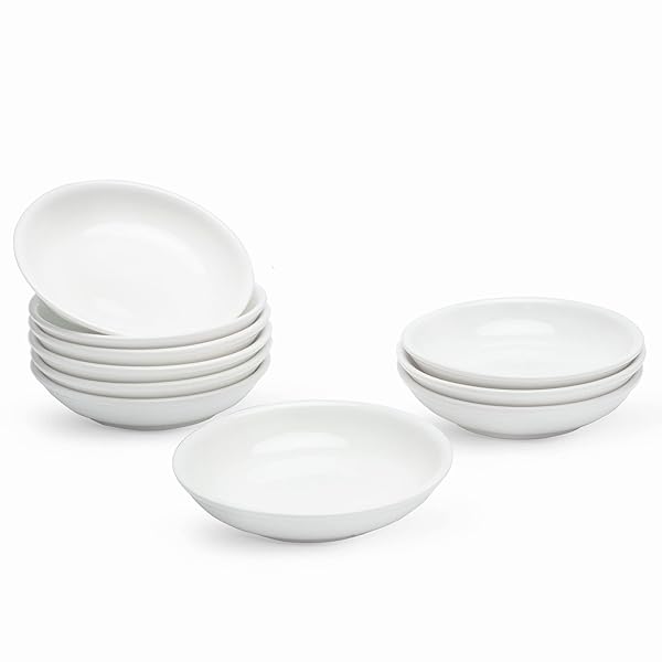 UIBFCWN 4 Inch Soy Sauce Dish, 3Oz Ceramic Dipping Bowls Bulk, Small Sauce Cups, Pinch Bowls, Porcelain Small Bowls for Sauce, Charcuterie, Dipping, Snack, Condiment, Side Dishes, Set of 10