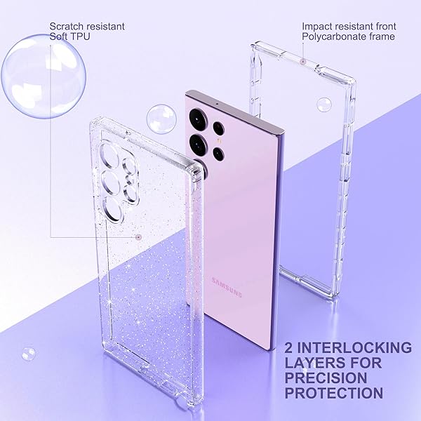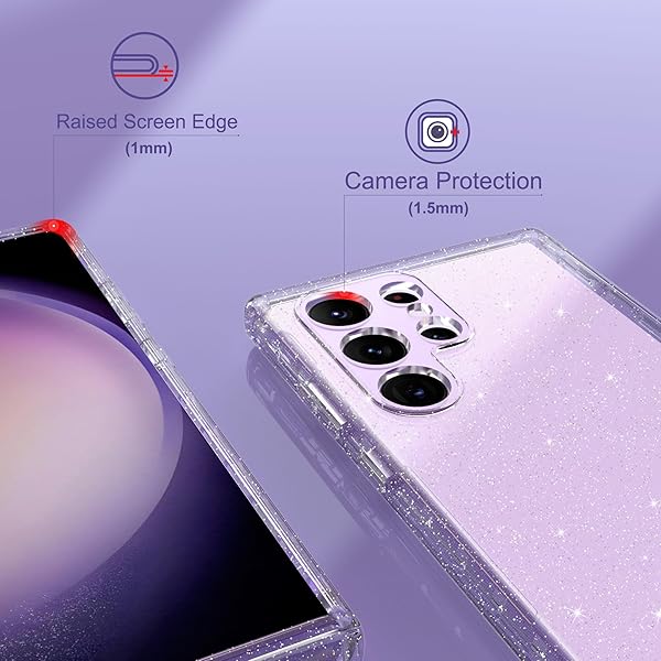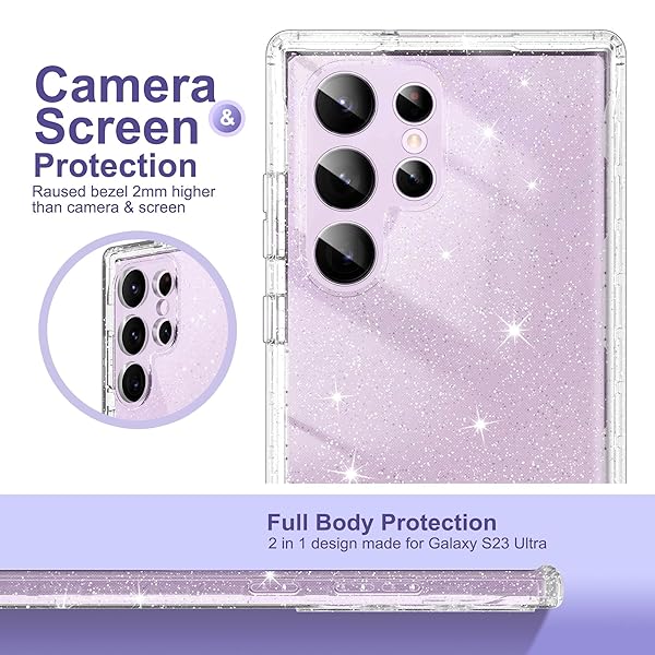 - ULAK Compatible with Samsung Galaxy S23 Ultra 5G Case, Heavy Duty Shockproof Hybrid Soft TPU Bumper Drop Protection Transparent Phone Case for Galaxy S23 Ultra 5G 6.8 inch - Clear Glitter: reliable performance and quality- Compatibility: Galaxy S23 Ultra glitter case- Military Grade Shockproof: After a military-grade drop- Protect the screen and camera: Lips raised at the- Precisely Developed: This Galaxy S23 ultra case