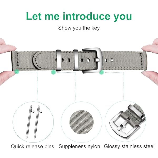 - ULLCHRO Nylon Watch Strap Replacement Canvas Watch Band Military Army Men Women - 18mm, 20mm, 22mm, 24mm Watch Bracelet with Stainless Steel Silver Buckle (22mm, Gray) offers reliable performance and quality- [Better Match] Military Nylon and kinds of colour choice will go best with your watch, diving gear or choice of clothes. This watch strap is also a good choice for a standard to heavy use watch