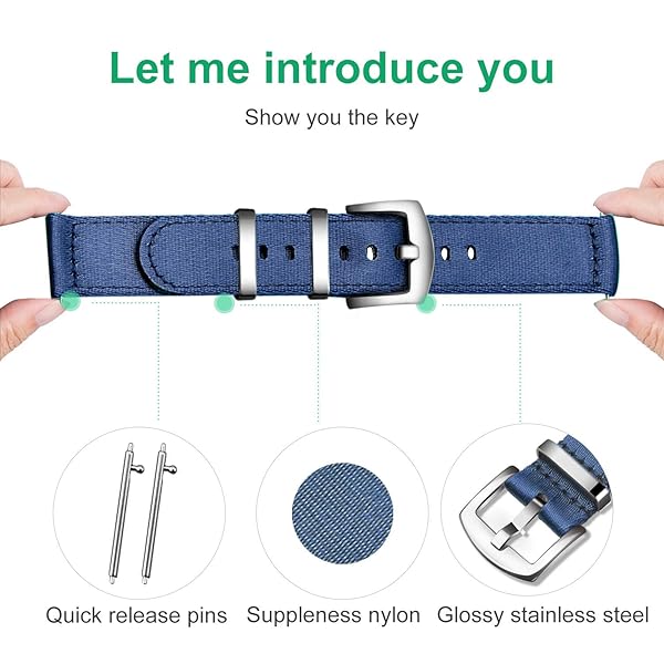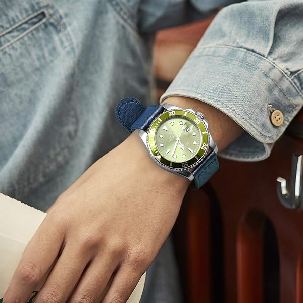 * ULLCHRO Nylon Watch Strap Replacement Canvas Watch Band Military Army Men Women - 18mm, 20mm, 22mm, 24mm Watch Bracelet with Stainless Steel Silver Buckle (24mm, Navy Blue): [better match] military nylon and kinds of colour choice will go best with your watch * Diving gear or choice of clothes * This watch strap is also a good choice for a standard to heavy use watch * [Strength * Suppleness and Simplicity] This nylon watch band is a good choice for a standard dress watch