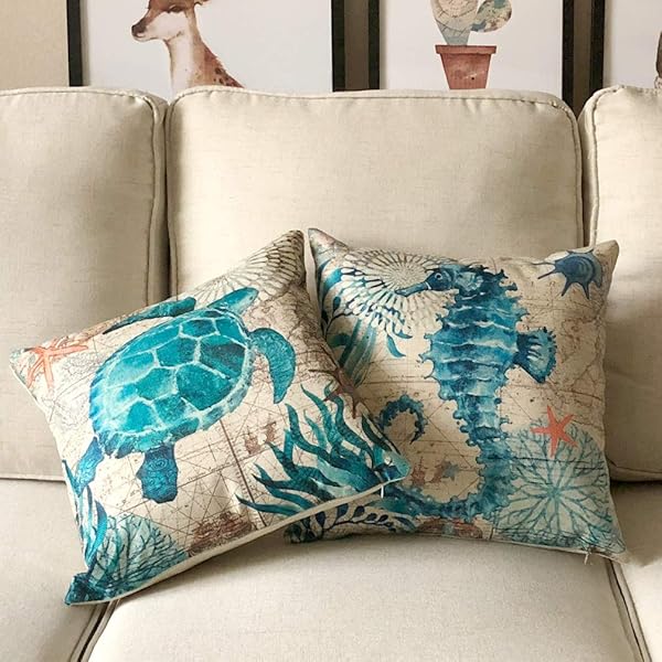 - ULOVE LOVE YOURSELF Mediterranean Style Throw Pillow Case Sea Theme Decorative Square Cotton Linen Coastal Cushion Cover for 18 X 18 Inch Pillow Inserts, 4Pack Nautical Pillow Covers offers reliable performance and quality- Keep your Square Throw Pillow clean and against scratch, finger marks- Coastal Pillow Cover,used for 18 x 18 Inches Pillow Inserts (pls note:Inserts are not included and the pattern paint one side only)