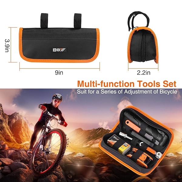 - Bicycle Repair Bag With Tire Pump, Portable Tool Kit for Camping Travel - Bike Glueless Patches, Maintenance Essentials All in One Safety Kit offers reliable performance and quality- Bicycle Repair Kit: include mini bicycle pump + bike multitool + crank extractor and wrench + bone wrench + tire lever + bike glueless patches set. for home bike, road bike, mountain bike and mtb bike emergency, repairs, removing, replacing, maintenance, gift