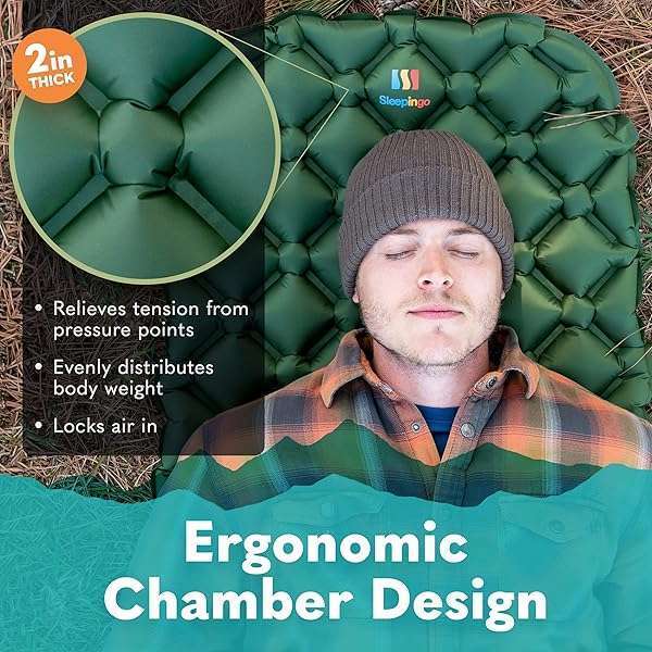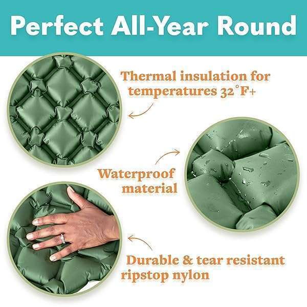 Sleeping Pad for Camping - Ultralight Sleeping Mat for Camping, Backpacking, Hiking - Lightweight, Inflatable Air Mattress - Compact Camping Mats for Sleeping- Green, 1pk
