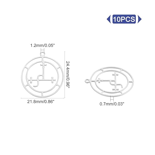 - UNICRAFTALE 10pcs Flat Round Charms Stainless Steel Sigil of Lilith Pendants Metal Hollow Charms for Jewelry Making, Stainless Steel Color, Hole 1.2mm offers reliable performance and quality- Flat Round Charm: Its design, we can say, is pretty and different. The hollow flat round image compatibale with steel make these charms meanful and eye-catching