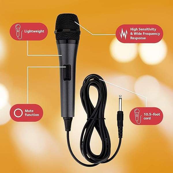 - Singing Machine Wired Microphone for Karaoke, (Black) - Unidirectional Dynamic Vocal Microphone - Plug-in Microphone for Karaoke Machine, AMP, & Speaker - Mic for Singing, Public Speaking, & Partie...- Karaoke Like a Pro: Singing Machines Unidirectional Dynamic Microphone will help ensure everyone hears your voice singing on karaoke night! Perfect for public speaking, weddings, parties, meetings,...
