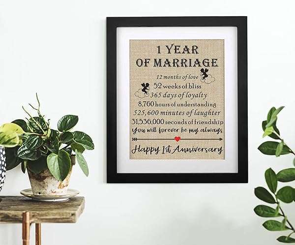 * Framed 1st Anniversary Burlap Print Gifts for Couple 1st Wedding Anniversary Keepsake Gift for Husband Wife Paper Anniversary 1 Year of Marriage: looking for the perfect first anniversary gift? whether youre buying for friends * A son and daughter-in-law * Daughter and son-in-law * Husband * Or wife