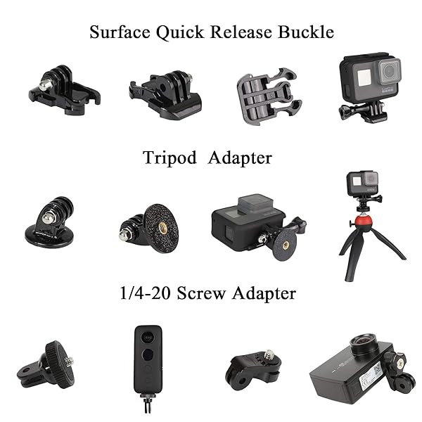 * Universal Action Camera Accessory Kit for GoPro Hero 13 12 11 10 9 8 7 6 5 Go pro Max Insta360 X5/X4/X3 DJI OSMO Action 3 4 5 Pro AKASO APEMAN Sports Cam, Helmet Base Adhesive Tripod Adapter Mount: 20 in 1 general accessory * This pack is a must-have accessory for gopro and other outdoor sports cameras * Through these accessories * The product can be connected to different products (like selfie sticks * Chest straps