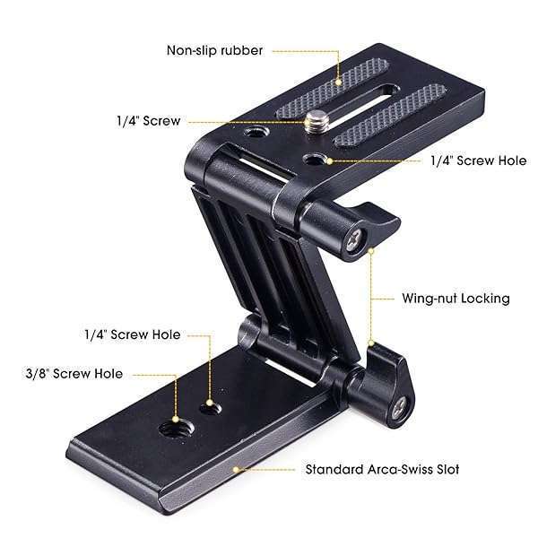 - Universal Flex Tilt Head Z Mount Bracket Arca-Swiss Tripod Head Quick Release Plate Mounting for Monopod Slider Rail Cage Rig Stabilizer Gimbal Compatible with DSLR Camera Canon Nikon Sony Panasoni...- THE ONLY Z TILT TRIPOD HEAD WITH ARCA-SWISS SLOTEquipped with a standard Arca-Swiss slot (38MM), which can be inserted in a standard Arca-Swiss clamp directly; Meanwhile comes with 1/4" and 3/8" th...