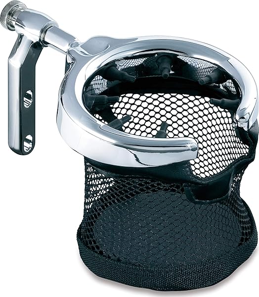 - Kuryakyn 1462 Motorcycle Handlebar Accessory: Universal Drink/Cup Holder with Mesh Basket for Clutch/Brake Perch Mount, Chrome provides reliable performance and quality- Instant accessibility to your beverage while on the go; Features "fingers" to firmly grasp onto various sized containers and keep in drink holder