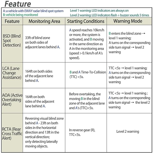 - EWAY Microwave Radar Sensor 77GHz Blind Spots Detection Auto Safety Monitoring Assistant System Universal for Lexus Cadillac Jeep Toyota Dodge GMC VW RV, Highly Accurate Digital Radar Technology pr...- Blind Spot Detection SystemThere is blind zone at the rear of the vehicle which is easy to endanger driving safety! This system is a vehicle assistance device that helps driver lane changing safely...