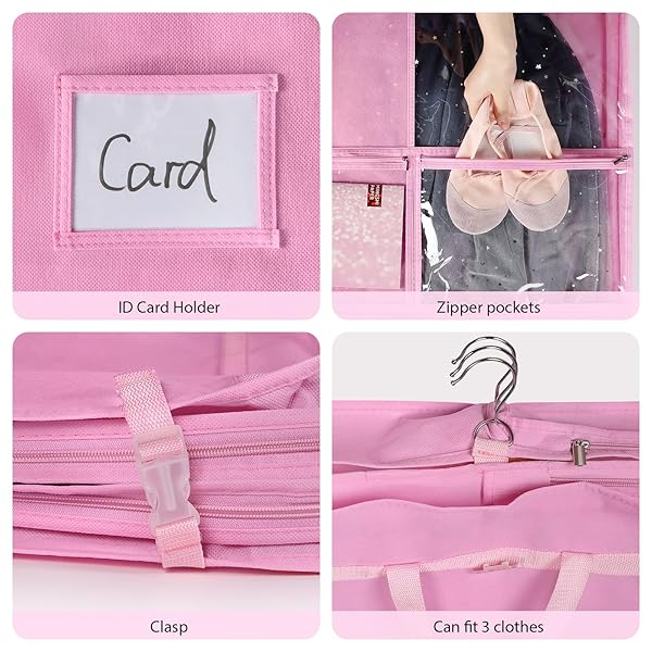 - Univivi 2-Pack Dance Costume Garment Bag, 40" Dance Costume Bag for Hanging Storage, kids garment bags with 3 Clear Zippered Medium Pockets and 2 Back Zippered Pockets and 1 xPendant, 3 x Badge (Pink) with reliable performance and quality- QUALITY FABRIC -The front of kids dance garment bag is made of PVC material, and the back is designed with breathable non-woven fabric, durable, odorless, breathable for long time use.- MULTIPLE ZIP POCKETS - The dance costume bag comes w
