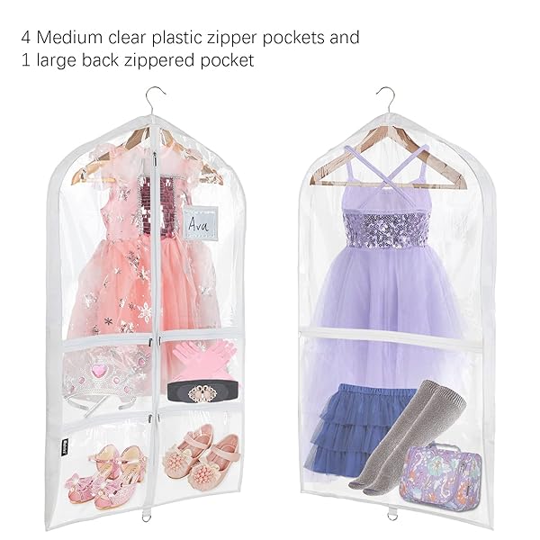- Univivi Clear PVC Dance Costume Bags (3 Pack) Garment Bag 40 Inch for Dance Competitions, with 4 Medium Clear Zipper Pockets and 1 Large Back Zippered Pocket [Upgraded Version] offers reliable performance and quality- HIGH QUALITY FABRIC - Set of 3 Dance Costume Bags, Made of clear PVC with Breathable Non-woven fabric gusset, durable, odorless, breathable and Waterproof and reuse use